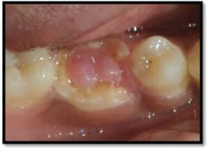⢠Impinged primary tooth over permanent tooth bud should be extracted to avoid causing infection to permanent teeth.